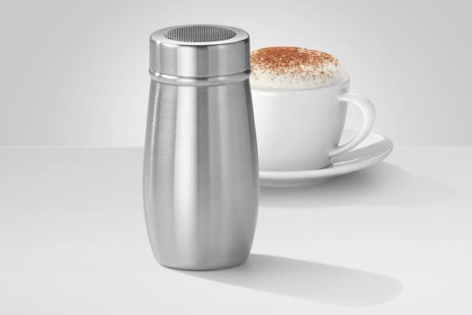 Dekorer din cappuccino med kakaopulver og bruk den elegante kakaodrysseren av rustfritt stål med sillokk for perfekt resultat. Det følger med et eget lokk for maksimum holdbarhet.